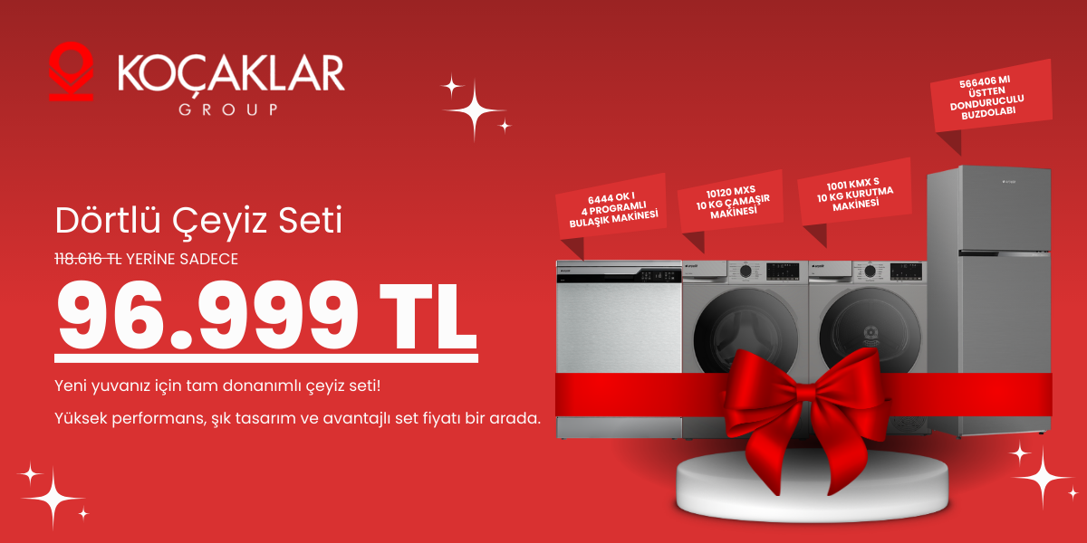 Bu set 566406 MI Üstten Donduruculu Buzdolabı + 1001 KMX S 10 Kg Kurutma Makinesi + 10120 MXS 10 Kg Çamaşır Makinesi + 6444 OK I 4 Programlı Bulaşık Makinesi model ürünleri kapsamaktadır.